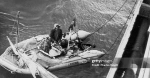 quote [ In the autumn of 1952, a small black rubber dinghy drifted out of the Canaries and into the immensity of the Atlantic Ocean. Its lone occupant was a doctor, Alain Bombard, a young French biologist determined to answer a deadly question. ]